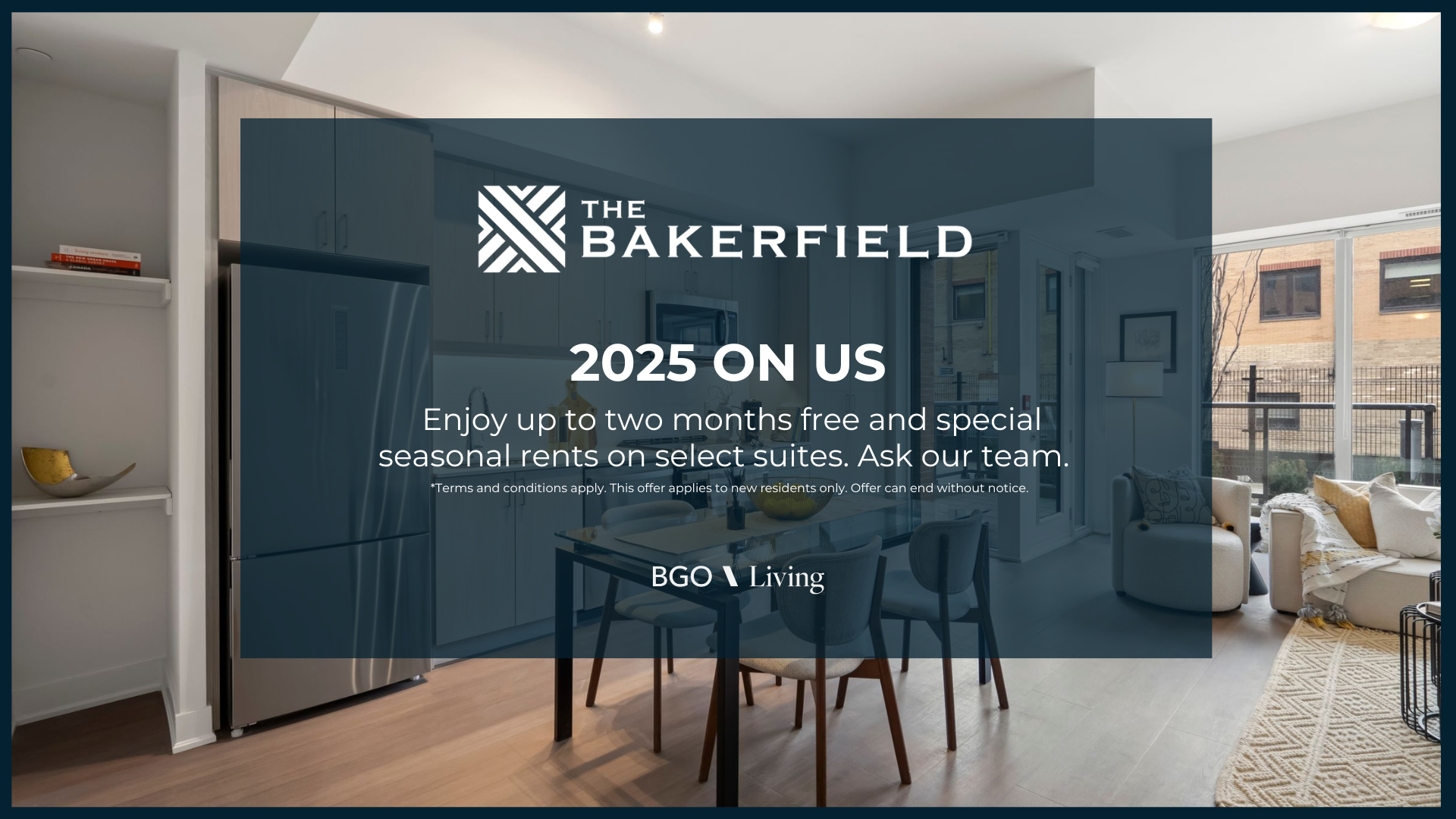 2025 On Us - Enjoy up to two months free and special seasonal rents on select suites. Ask our team.